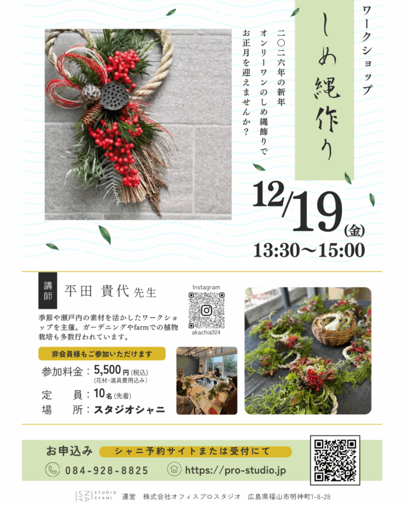 ワークショップは、地産(広島)の素材を使うという趣旨で行われていらっしゃいます。