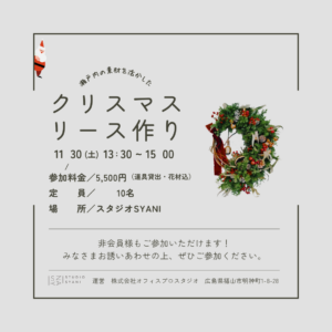 ~瀬戸内の素材を活かす~ クリスマスリース作り ~瀬戸内の素材を活かす~ クリスマスのシーズンを前にリースのワークショップを開催❕ 🎄季節を楽しむ時間🎄クリスマスリースは簡単に手に入るものかもしれませんが、そこに手間をか […]