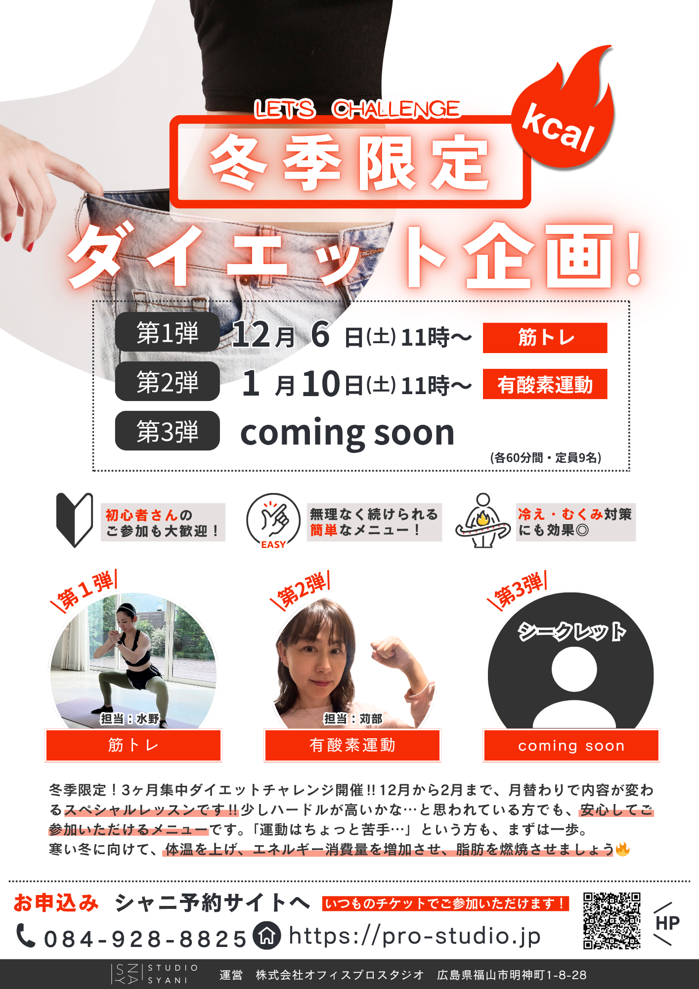 冬季限定!3ヶ月集中ダイエットチャレンジ開催‼️
