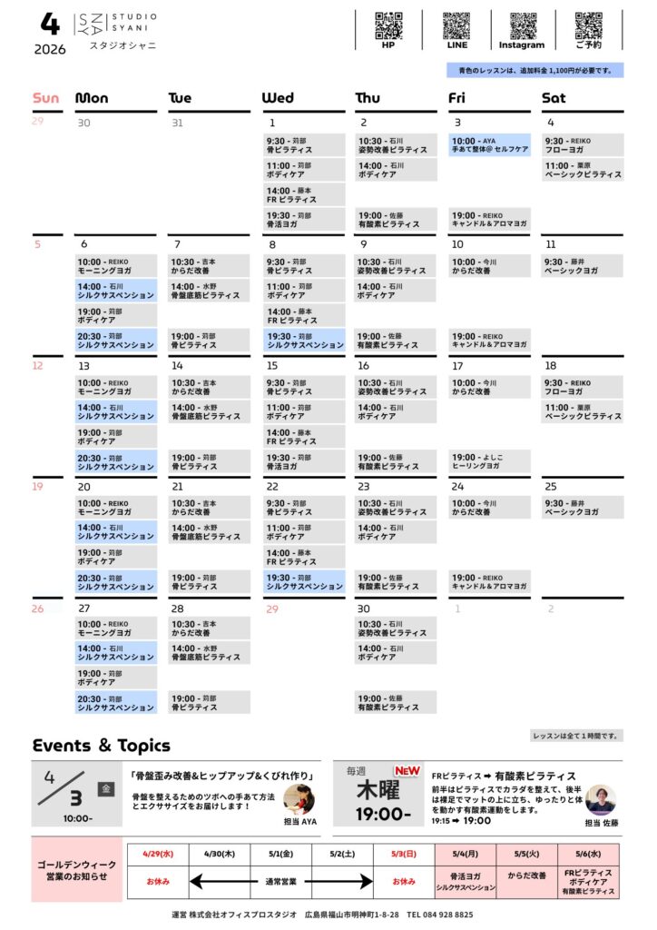 スタジオシャニ スケジュール