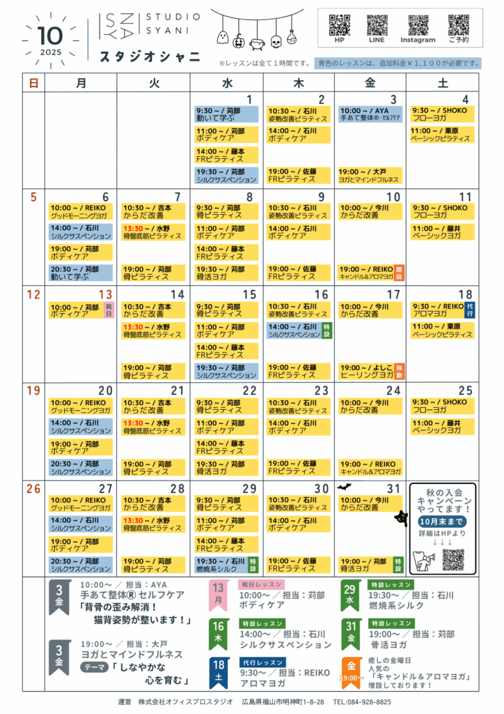 尚、スタジオシャニのプログラムは完全予約制となります。