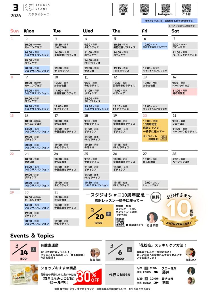 スタジオシャニ スケジュール